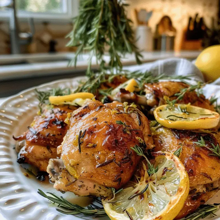 Imagine the smell of succulent chicken thighs, marinated in a zesty lemon and fragrant rosemary blend, sizzling away in the oven. Each bite bursts with