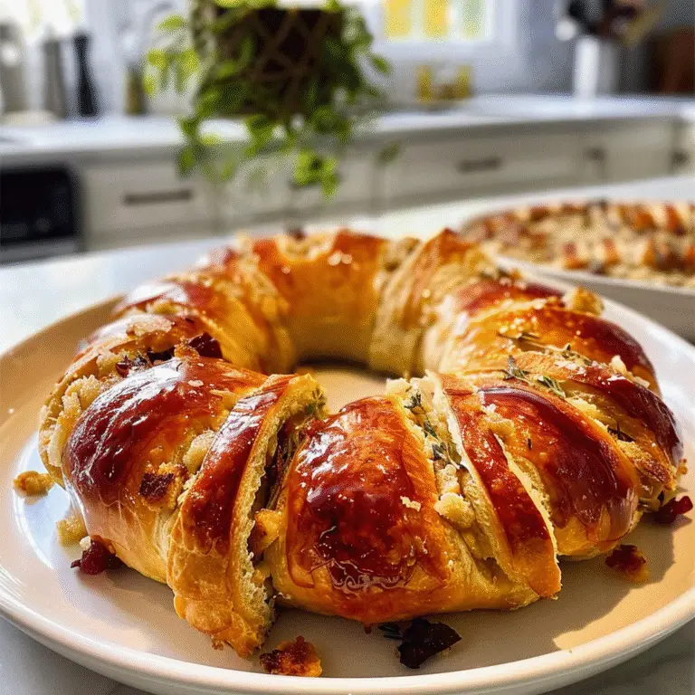 The Thanksgiving Crescent Ring is a feast for the senses, with its golden, flaky crust and a warm, savory filling that dances on your taste