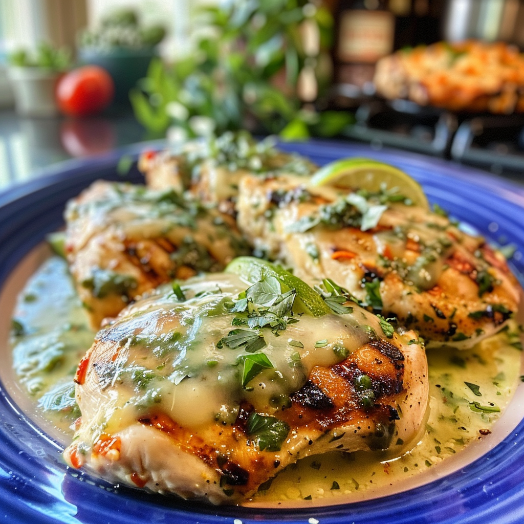 Grilled Salsa Verde Pepper Jack Chicken is like a fiesta on a plate, bursting with flavors that dance in your