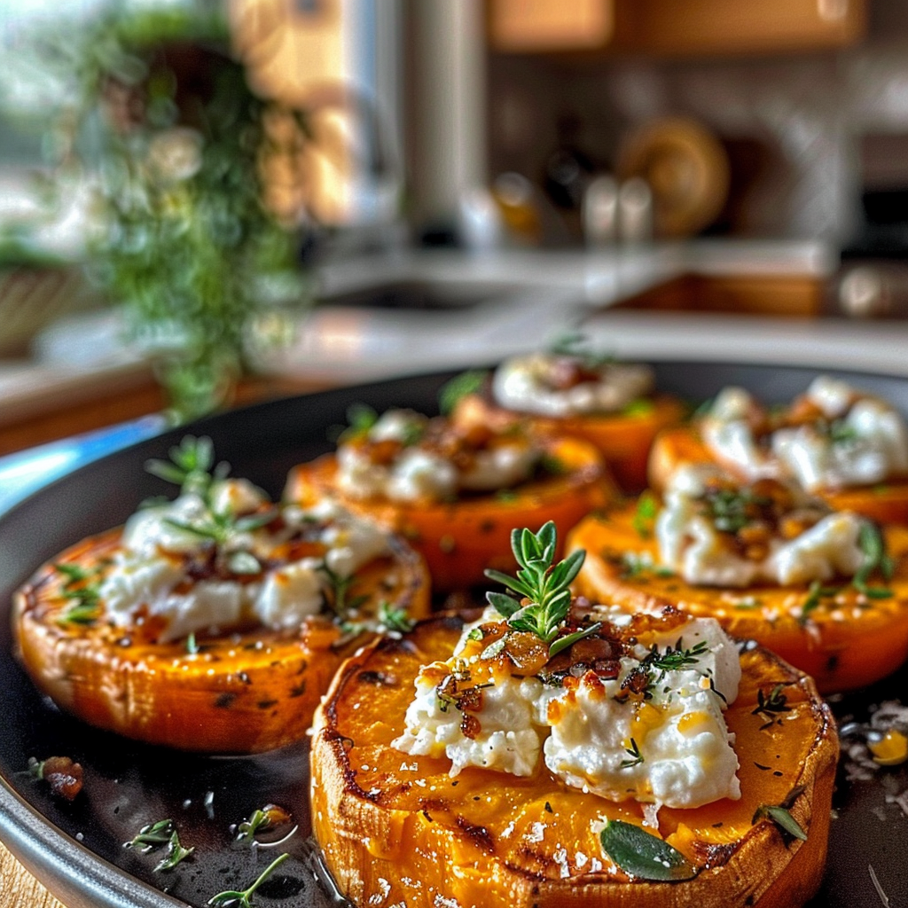 There’s something magical about the combination of sweet potatoes and goat cheese that makes my taste buds do a happy