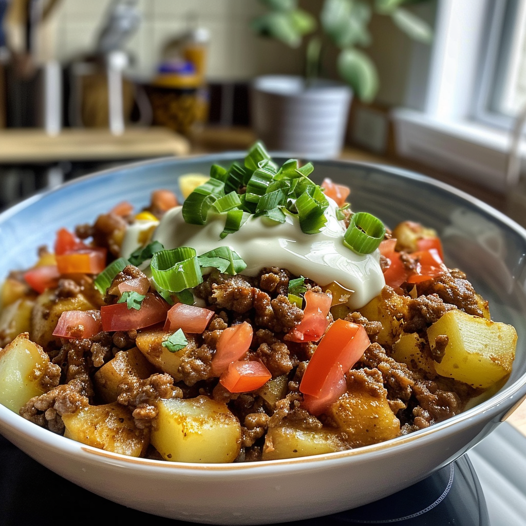 Prep Your Ingredients: Start by chopping your onion and browning the ground beef in a skillet over medium heat until fully cooked. Drain excess fat before adding seasonings.