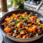 Experience a flavorful adventure with this Southwestern Ground Beef Sweet Potato Skillet. This vibrant dish combines sizzling ground beef, sweet potatoes, and colorful vegetables, seasoned to perfection. Ideal for busy weeknights or cozy gatherings, it offers a delightful blend of savory and sweet that will impress family and friends alike. Ready in under 30 minutes, it’s not just a meal; it’s an experience worth sharing!