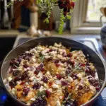 Add Cranberries and Feta: Scatter fresh cranberries across the top of the chicken, then sprinkle crumbled feta generously over everything. The colors should pop like confetti!