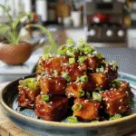• Sticky Chilli and Garlic Tofu is a flavor-packed dish that balances heat with sweetness