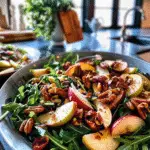 Apple Arugula Salad with Maple Pecans is a vibrant, refreshing dish that perfectly balances the sweet crunch of apples, the peppery bite of arugula, and the warmth of toasted maple pecans. Ideal for brunch or as a light meal, this salad not only pleases the palate but also dazzles with its colorful presentation, making it perfect for any gathering. Enjoy a burst of flavor in every bite!