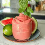 Pour and Serve: Once you’ve achieved perfection in taste and texture, pour your watermelon smoothie into chilled glasses. perfect for festive gatherings For added pizzazz, garnish with mint leaves or even a slice of watermelon on the rim.