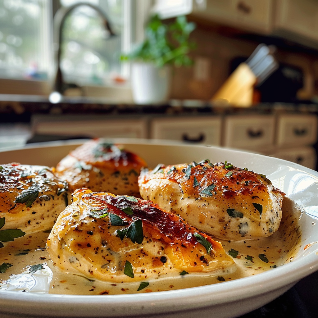 Bake Until Perfectly Juicy: Place the baking dish in the oven and bake for about 25-30 minutes until the chicken reaches an internal temperature of 165°F (75°C)—you’ll know it’s ready when it smells heavenly.